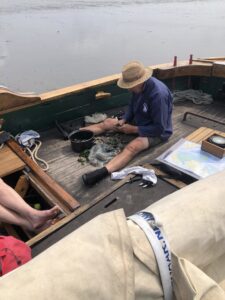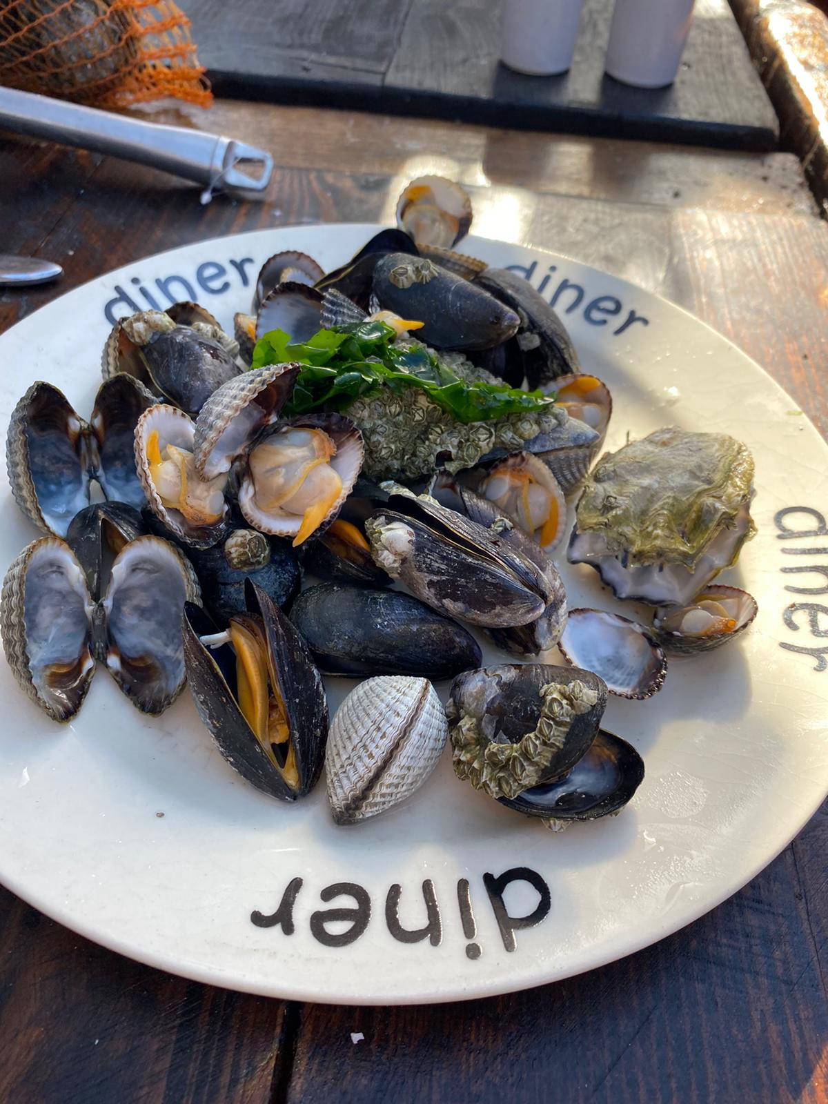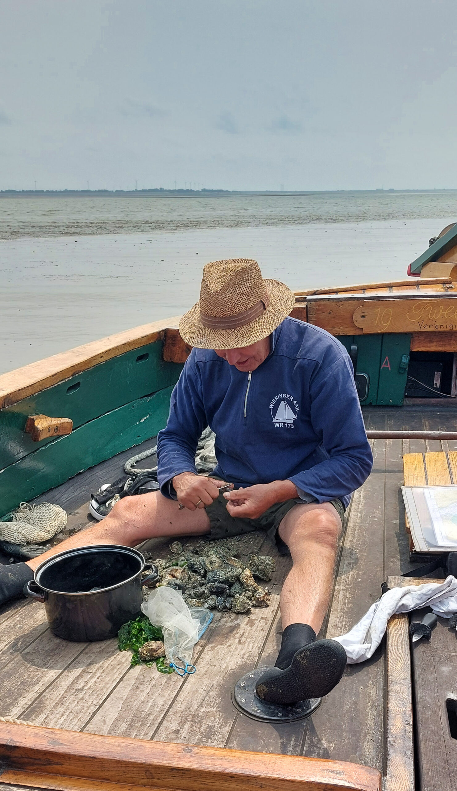 De verzamelde schelpdieren worden meegenomen aan boord en daar gekookt. Voor wie dat wil houden we ook wat oesters en mosselen apart. Met een speciaal oestermes worden ze geopend, zodat ze vervolgens rauw naar binnen te “slurpen” zijn.